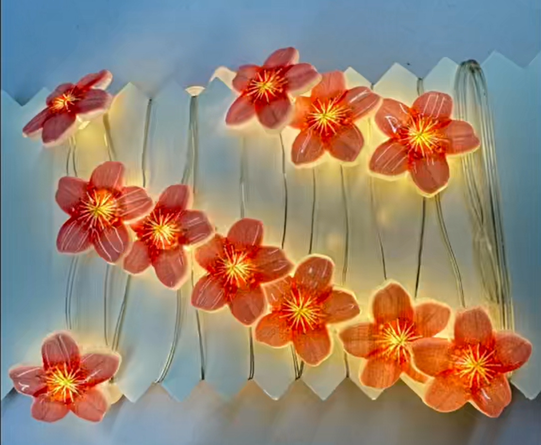 LED string with flower button, LED light, flower shape, Li-battery, Li-battery LED string